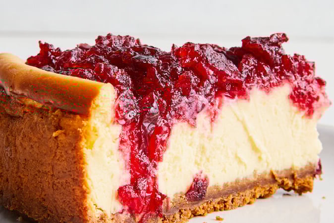 Once the cheesecake has set, gently spread the remaining 1/4 cup cranberry sauce over the top.