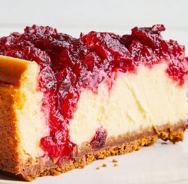 A festive, cranberry-topped cheesecake with no added sugar, and Keto friendly. Fantastic option for your holiday table.